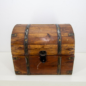 kleine Holztruhe Schatztruhe mit Schlitz und Metallbeschlägen