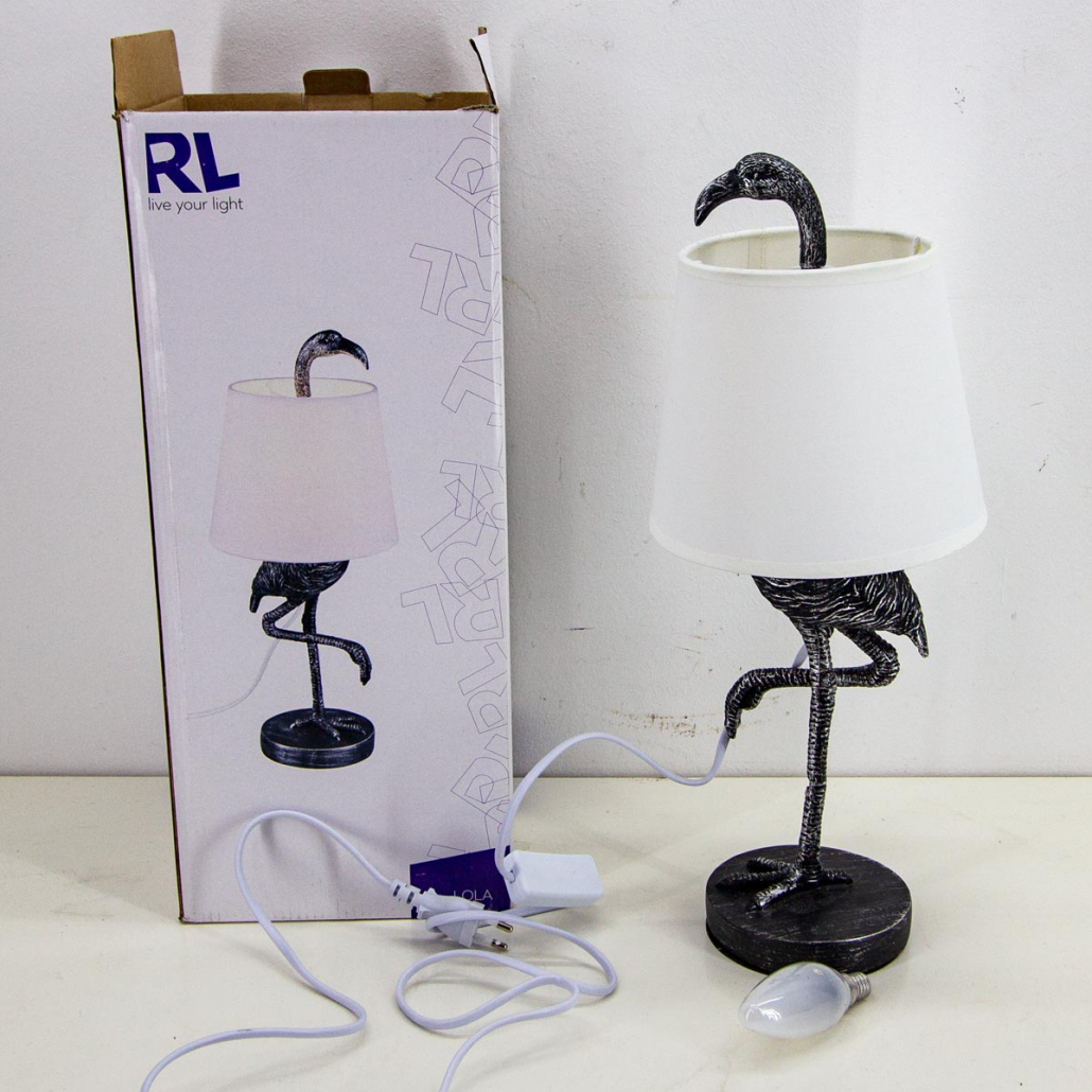Tischlampe Flamingo mit weißem Schirm